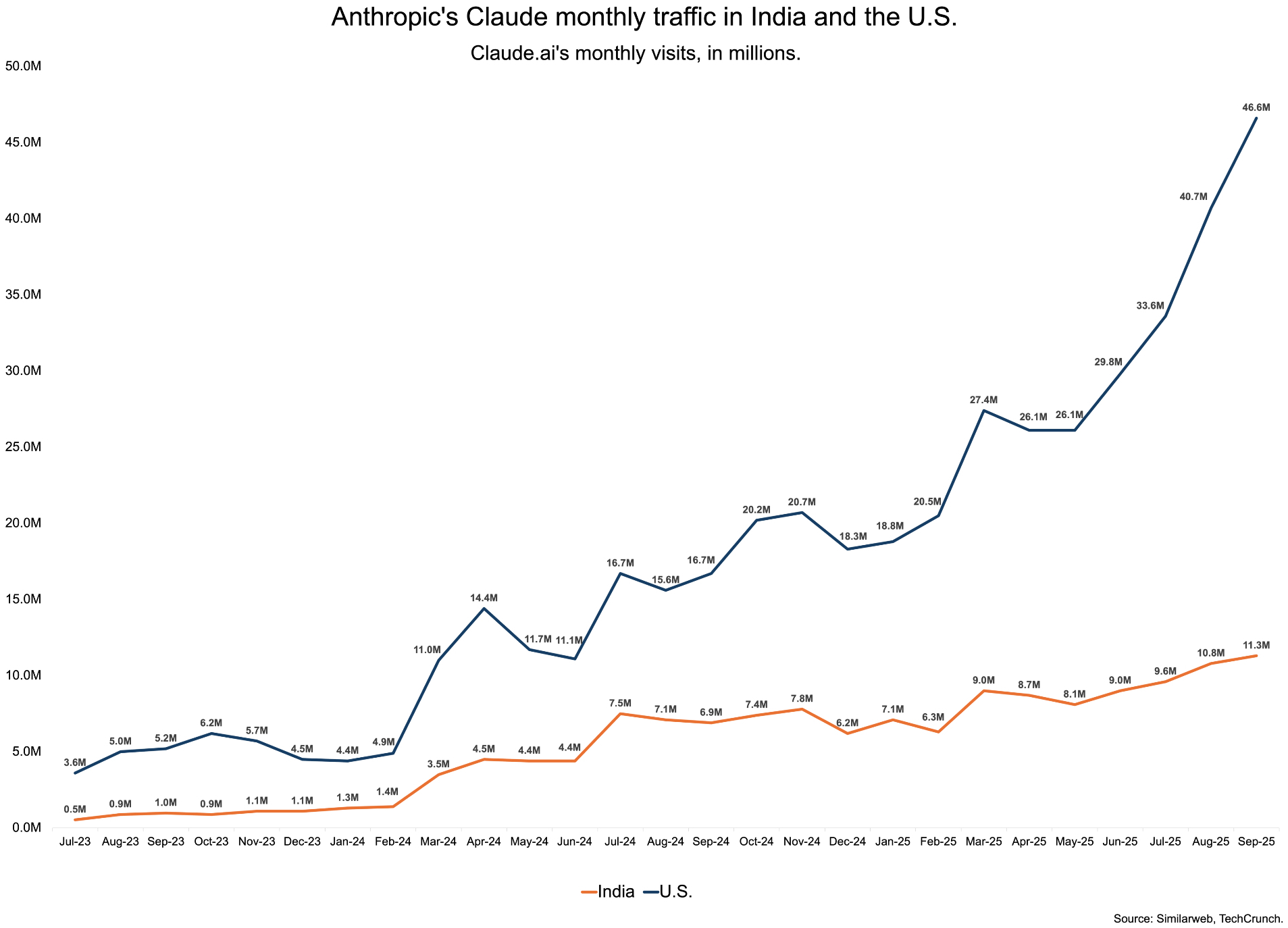 هند، دومین بازار آنلاین بزرگ جهان پس از چین، با بیش از یک میلیارد مشترک اینترنت، به یک منطقه رشد مهم برای Anthropic تبدیل شده است. چندین استارتآپ هوش مصنوعی هندی در حال حاضر از مدلهای Claude آن در محصولات خود برای مشتریان داخلی و ایالات متحده استفاده میکنند. بر اساس گزارش شرکت اطلاعات دیجیتال Similarweb، هند همچنین پس از ایالات متحده، دومین سهم ترافیک بازدید از وبسایت Claude را به خود اختصاص داده است.