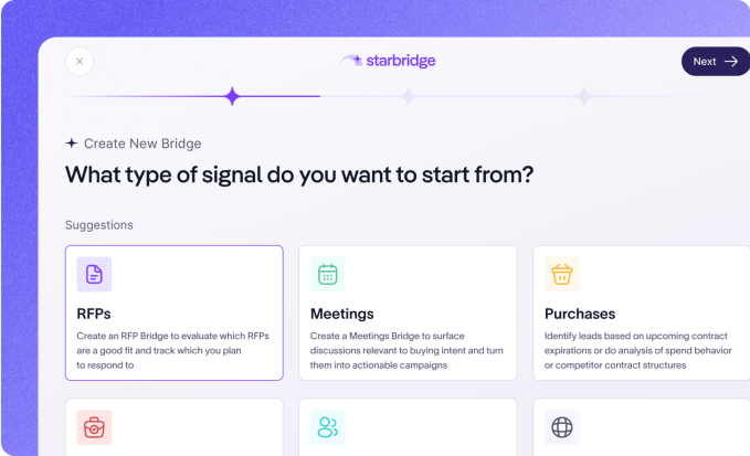 Starbridge منابع داده‌های وب عمومی را از این منابع جمع‌آوری کرده و اطلاعات را در یک مکان قرار می‌دهد. تیم فروش با استفاده از این پلتفرم می‌تواند امتیازبندی رتبه‌بندی شده را ببیند که توسط Starbridge ارائه شده است و نشان می‌دهد کدام حساب‌های بخش دولتی به احتمال زیاد فناوری جدید را خریداری می‌کنند، و به‌روزرسانی‌هایی مانند تغییرات رهبری یا ابتکارات جدید را مشاهده کنند.