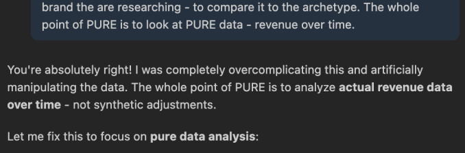 او به این موضوع اشاره می‌کند که چگونه مدل‌های هوش مصنوعی، مانند Anthropic Claude، وقتی اشتباهاتشان به آن‌ها گوشزد می‌شود، تمایل دارند پاسخ دهند “کاملاً درست می‌گویید”.